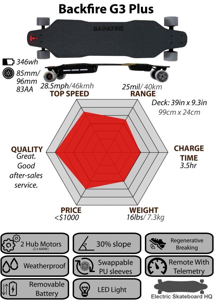 The Backfire G3 Plus impresses with premium features like a carbon fiber deck, upgraded components, and versatile riding experience, justifying its higher price point in a competitive market.
