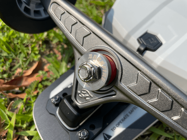 There’s nothing we can nitpick about these trucks; they enable smooth carving and tight turns and, through some sorcery, remain incredibly stable at high speeds.