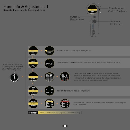But the Lorentz remote takes things a step further. It features a 1.4-inch (3.6 cm) AMOLED touchscreen that’s bright, responsive, and lets you adjust settings, switch themes, tweak lighting effects, lock or unlock the board, and access cruise control—all directly from the display.