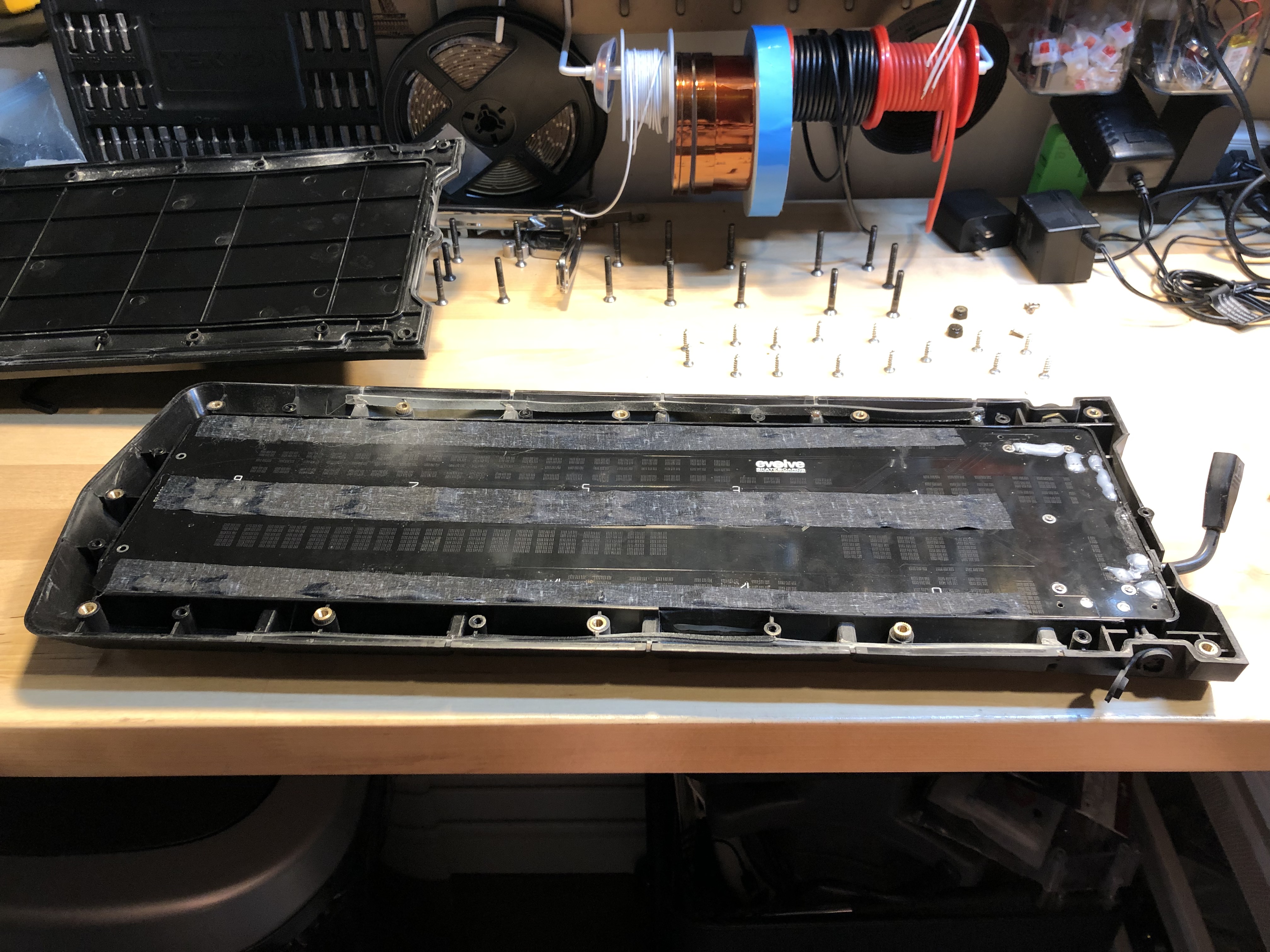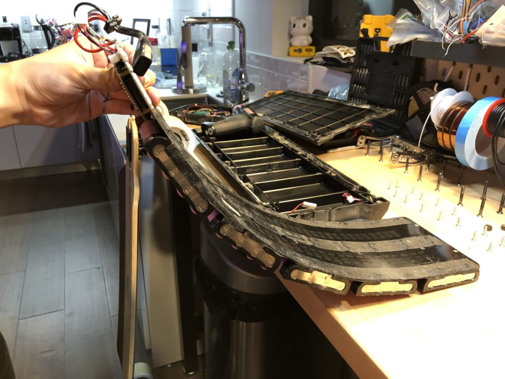You can clearly see how flexible this pack is. I’m actually very impressed with the design of this pack. The traces on the PCB can actually carry around 200A, even though the full pack is rated at 32A continuous and 52A burst. Evolve says that average continuous riding will hit 20A discharge and that in their side by side comparisons with the same pack made of 30q cells, the 35e performed better. I don’t claim to know what metrics they’re looking at for performance, but this is what I’ve been told.