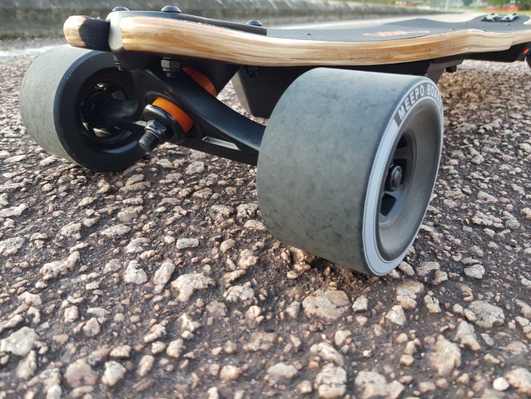 The shredder trucks gave really great turning and carving. Perhaps it is the use of tall barrel bushings or perhaps it’s all about the trucks. Either way, the Meepo Classic is fun to carve, easy to turn, and it does that well without compromising on stability.