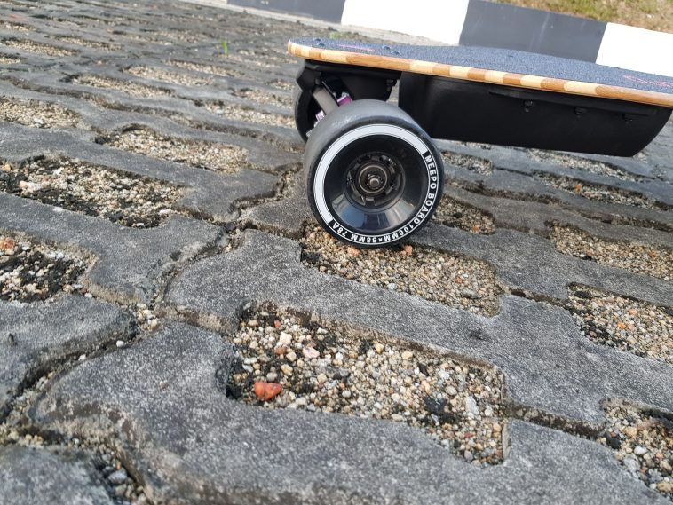 The best-selling point for Meepo NLS is undoubtedly its ability to handle poor roads. 100mm wheels with thick urethane sleeves plus flexy deck create an amazing vibration dampening system.