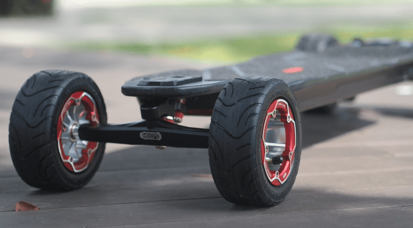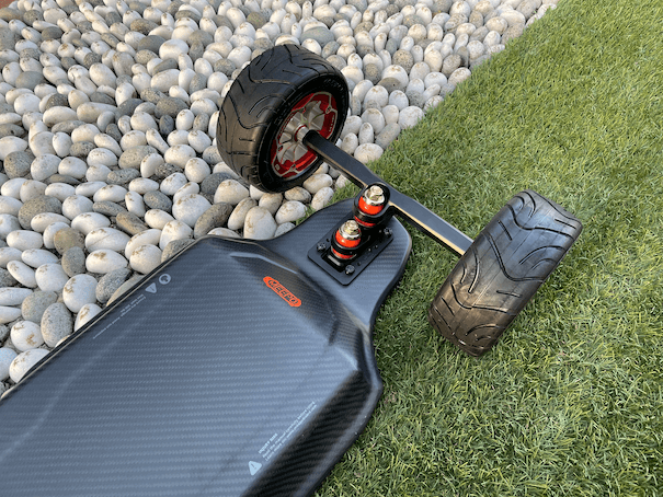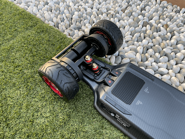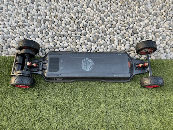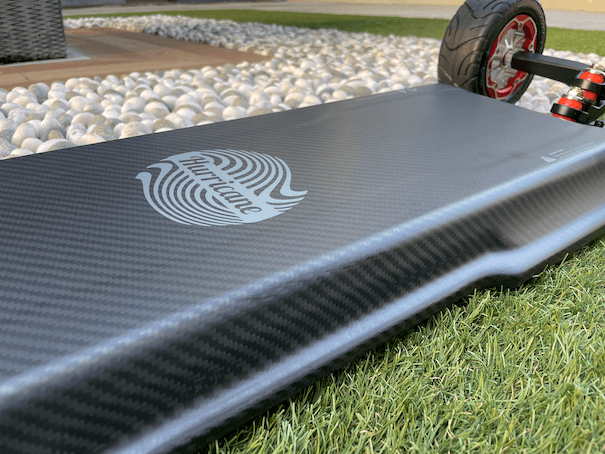 For those who are unfamiliar with the Hurricanes, this stunning carbon fiber deck is nice to ride, too. It’s nice and wide, with enough room for people with larger feet. Given that this is a very, very powerful board, it is crucial that the board remain stable at high speeds, which was made possible by the stiffness of the deck and the pronounced concave.