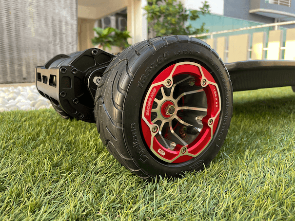 We also blame the grippy-ness of the cyclone wheels for holding back the acceleration. When we test the top speed, it feels like the wheels are too glued to the tarmac, stopping the board from leaping forward. Additionally, the board will abruptly lose speed when the throttle is released, which could cause wobbles for inexperienced riders. This was unexpected because, typically, belt systems provide better free-rolling than gear drives, but the 165S Cyclone wheels appear to offset that advantage.
