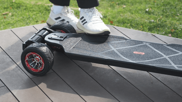 Meepo Hurricane Vader has a very distinct riding feel. It uses double kingpin trucks, but the board feels more stable than it is responsive. We believe the 165s Cyclone Wheels, which have large contact patches and are incredibly grippy, are a big factor in this. This means that while we can maneuver the board with ease and carving is fun, the board isn’t nimble, and executing sharp L turns is not easy.